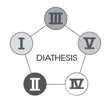 The Diathesis is system of categorization that classifies a person into five groups - Diatheses I to V - based on the personal physiological and psychological weak points. This concept had originally been created by the French medical doctor Jacques Ménétrier.